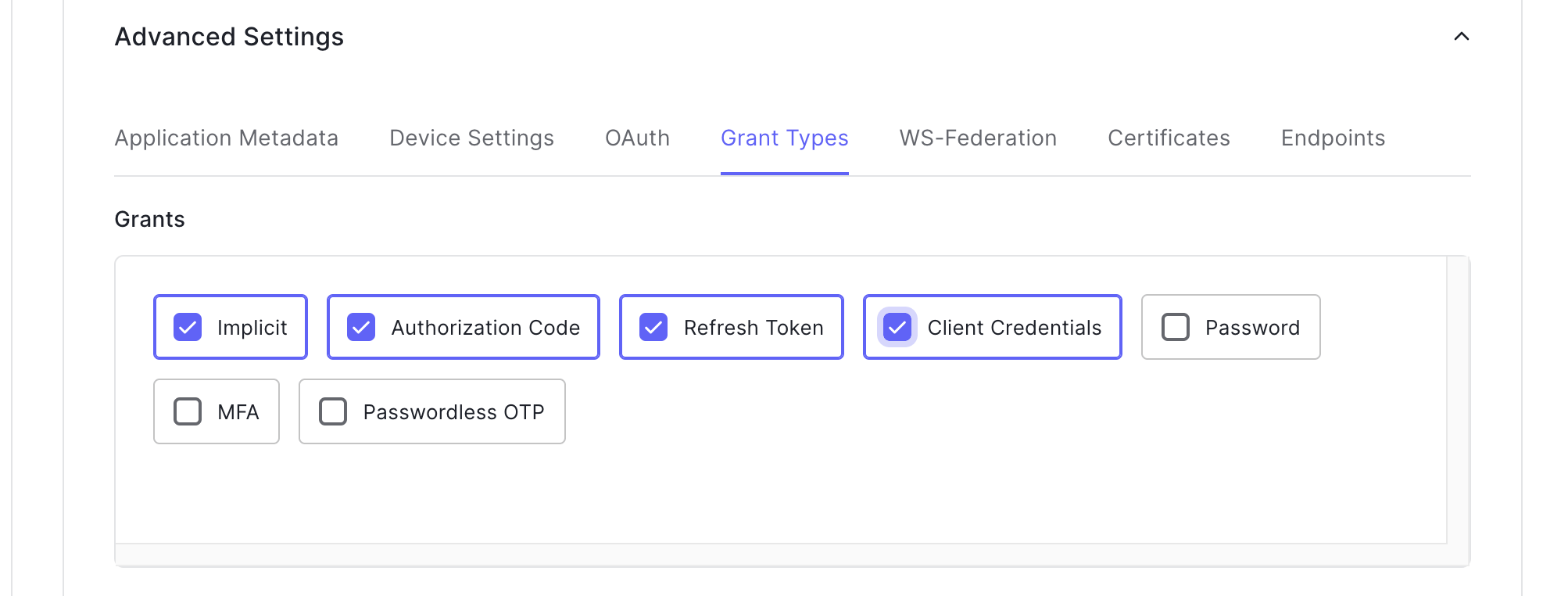 client_credentials and save the changes.