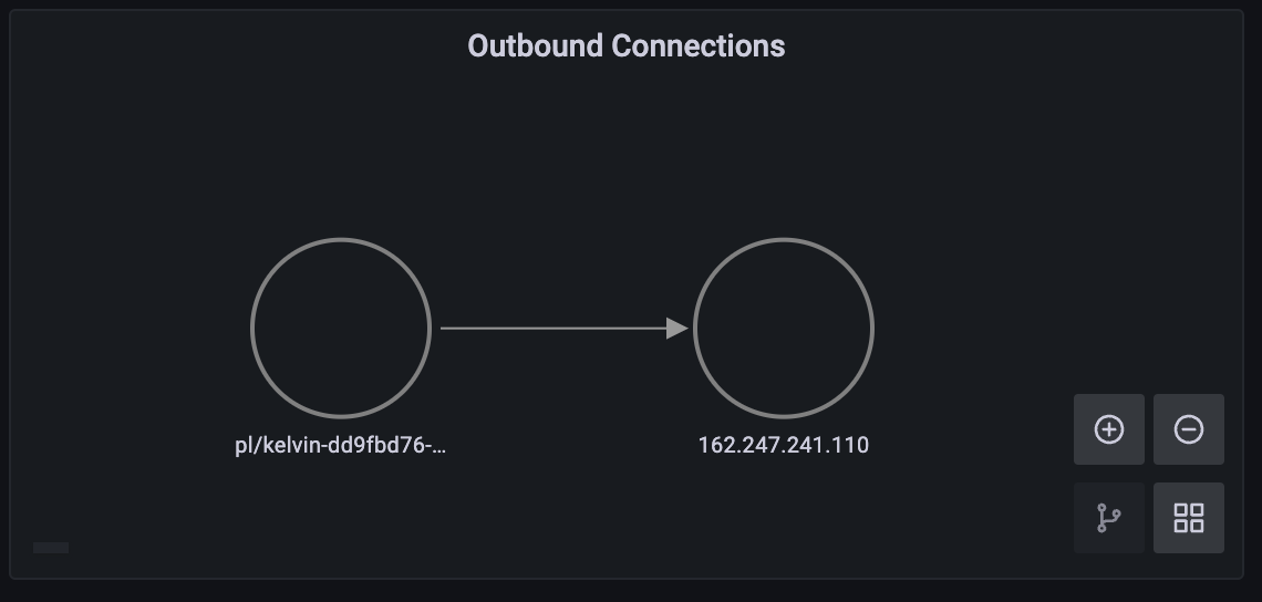 Use the Outbound Connections script to see outbound network connections from your cluster (connections made to external IPs). Note: this node graph panel requires Grafana version 8.0.0+.