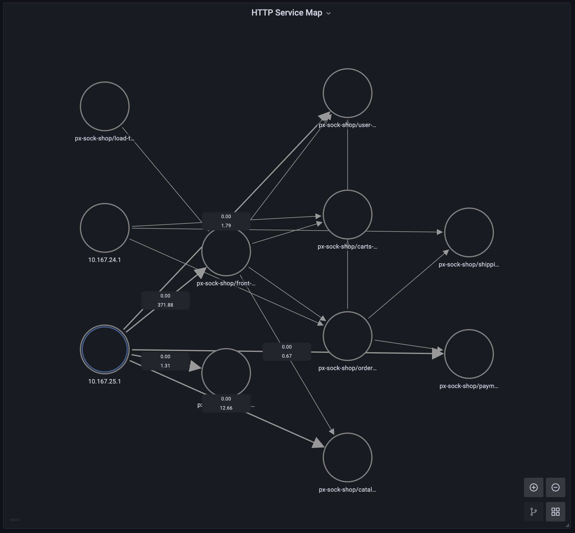 Use the HTTP Service Graph script to see a graph of the HTTP requests in your cluster. Note: this node graph panel requires Grafana version 8.0.0+.