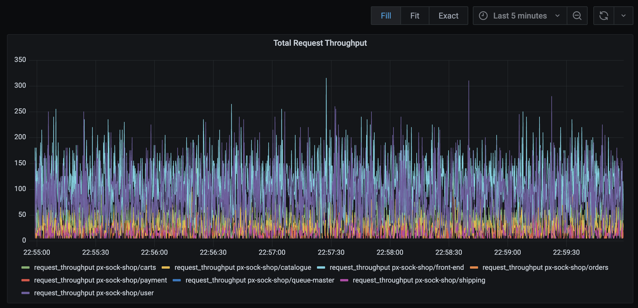 This script creates a time series graph of HTTP throughput per service. You should see data plotted over time, but the exact numbers will vary depending on the traffic in your cluster.