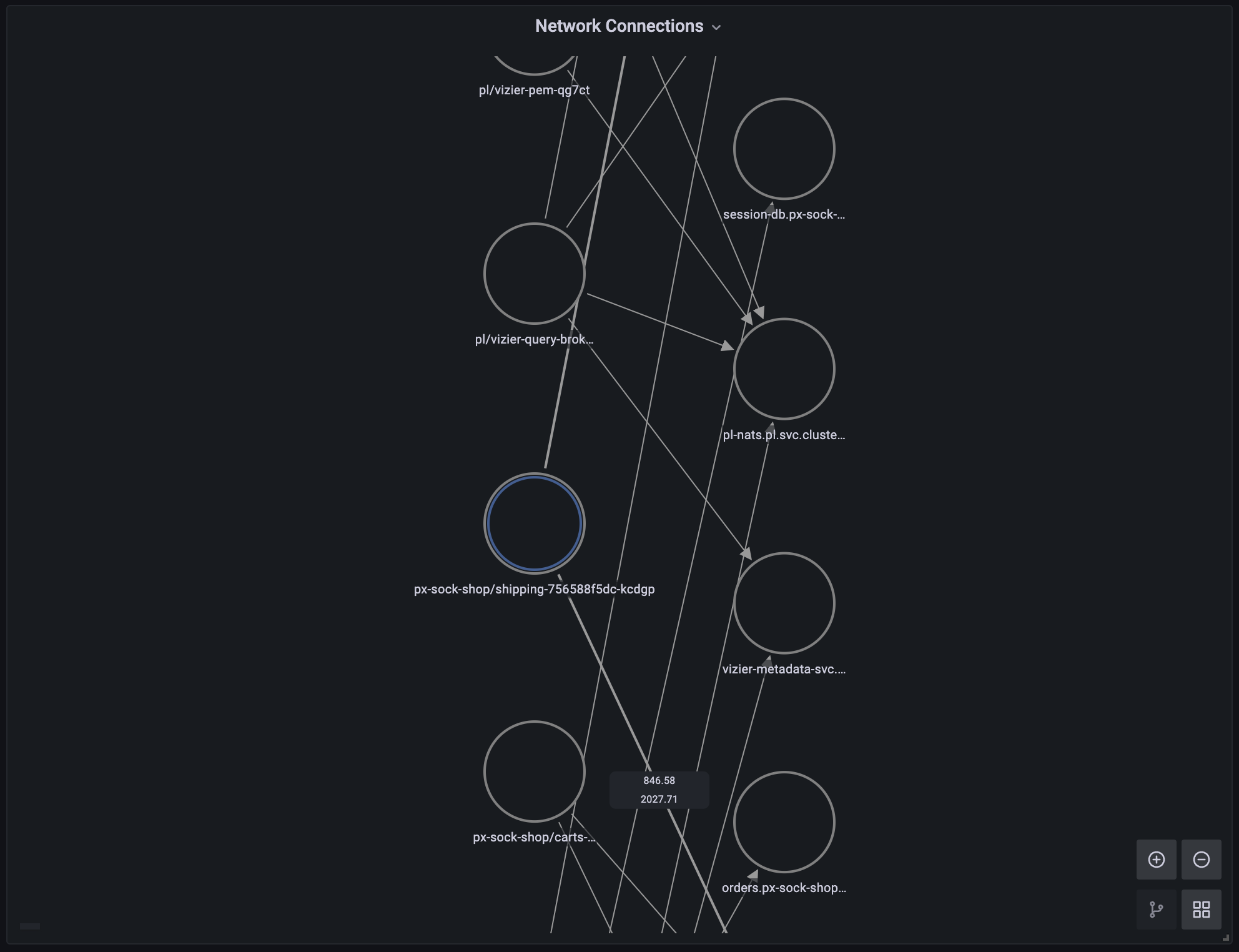Use the Network Connections script to see network connections to, from, and within your cluster. Note: this node graph panel requires Grafana version 8.0.0+.