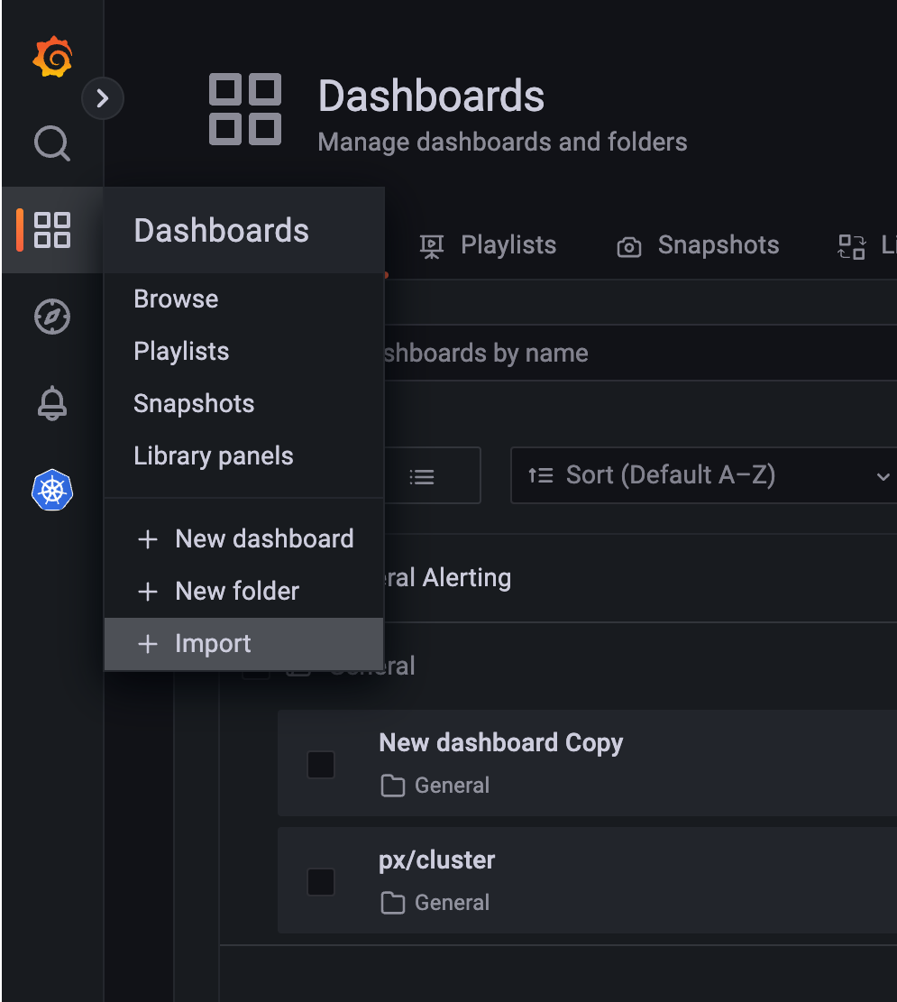 To import a Pixie dashboard: