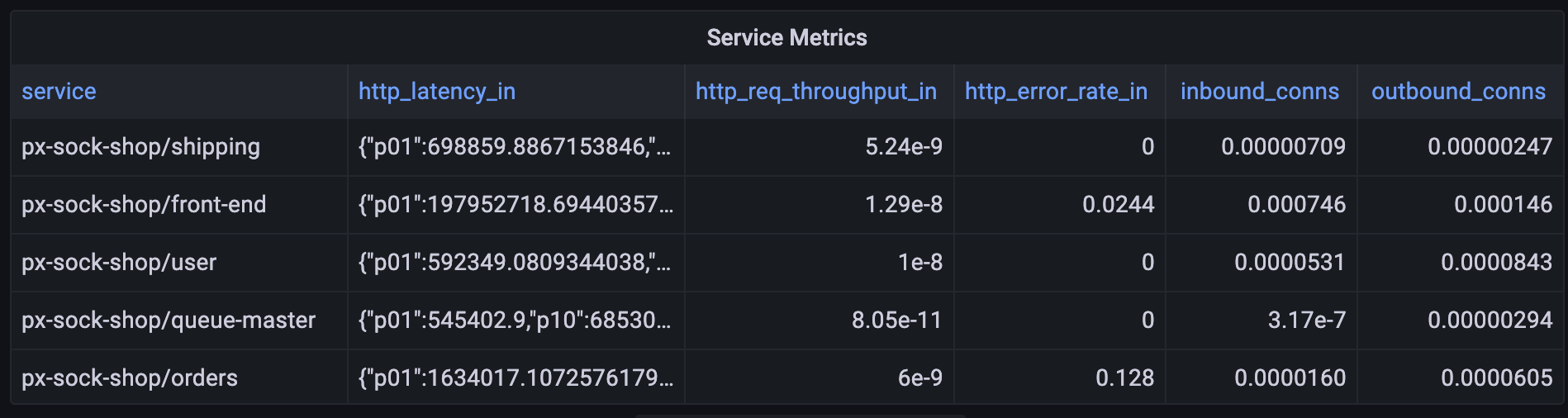 Use the Service Metrics script to see high-level metrics for each service in your cluster: