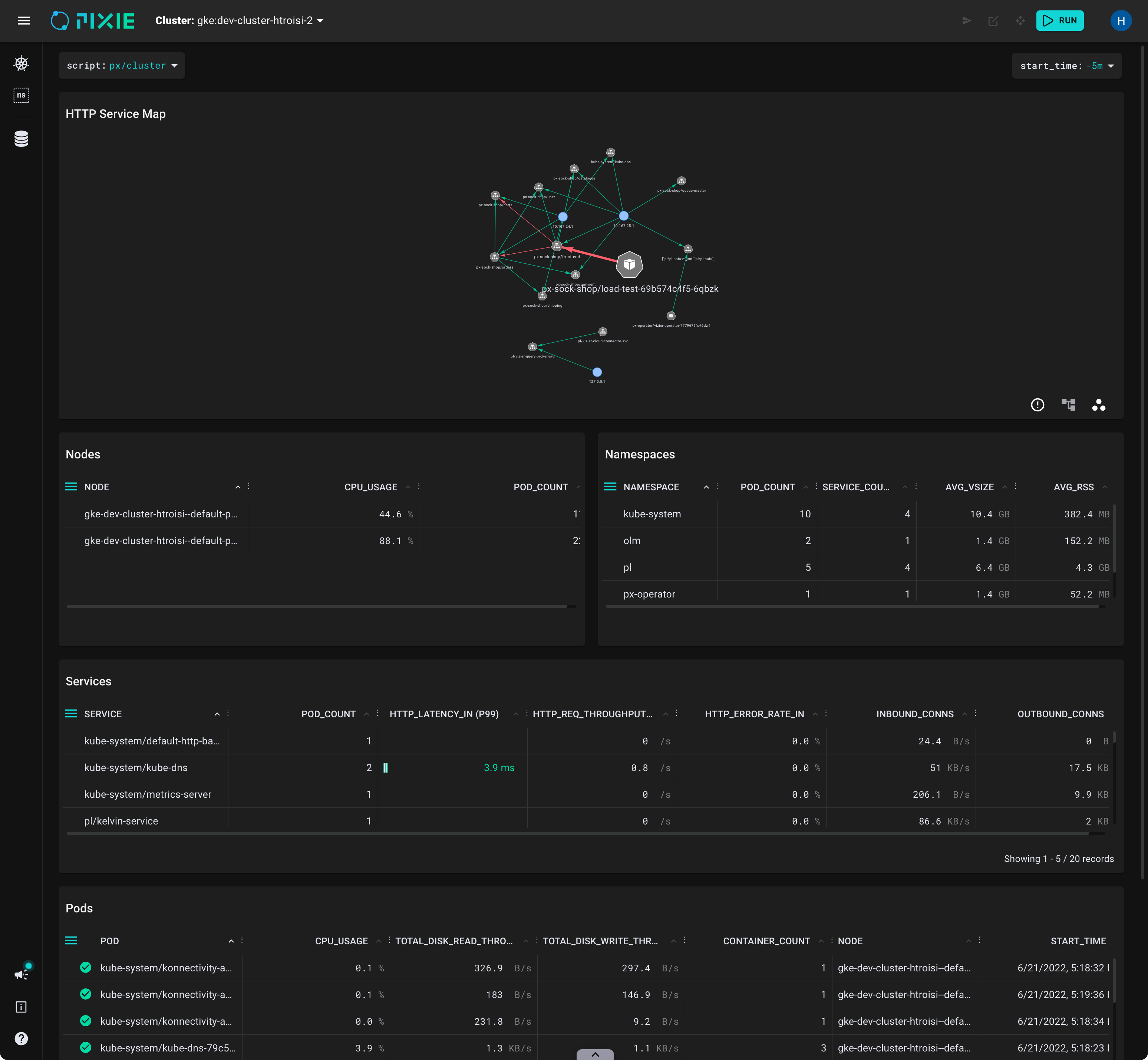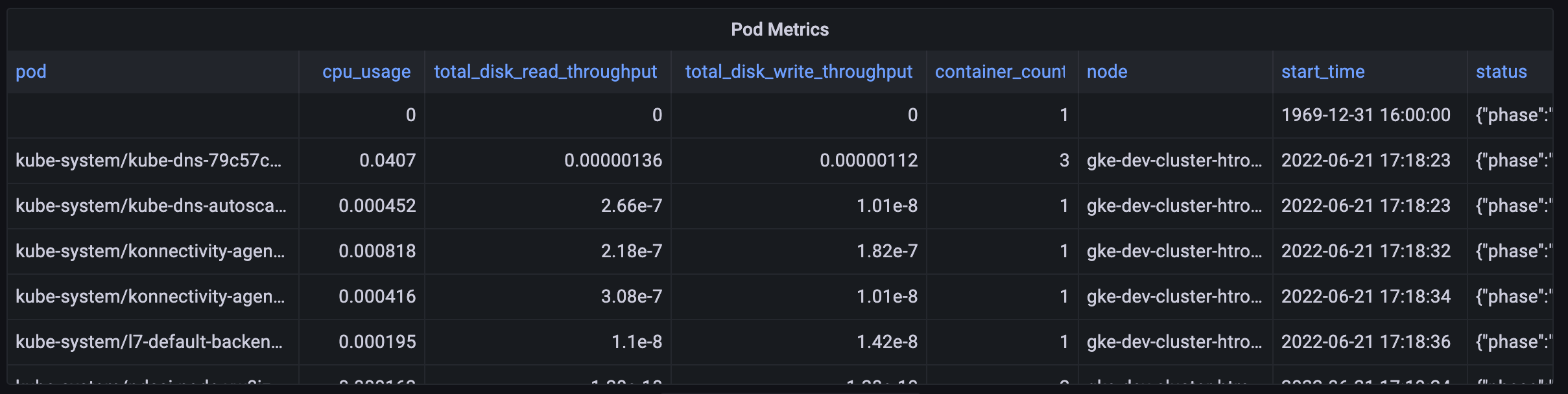 Use the Pod Metrics script to see high-level metrics for each pod in your cluster:
