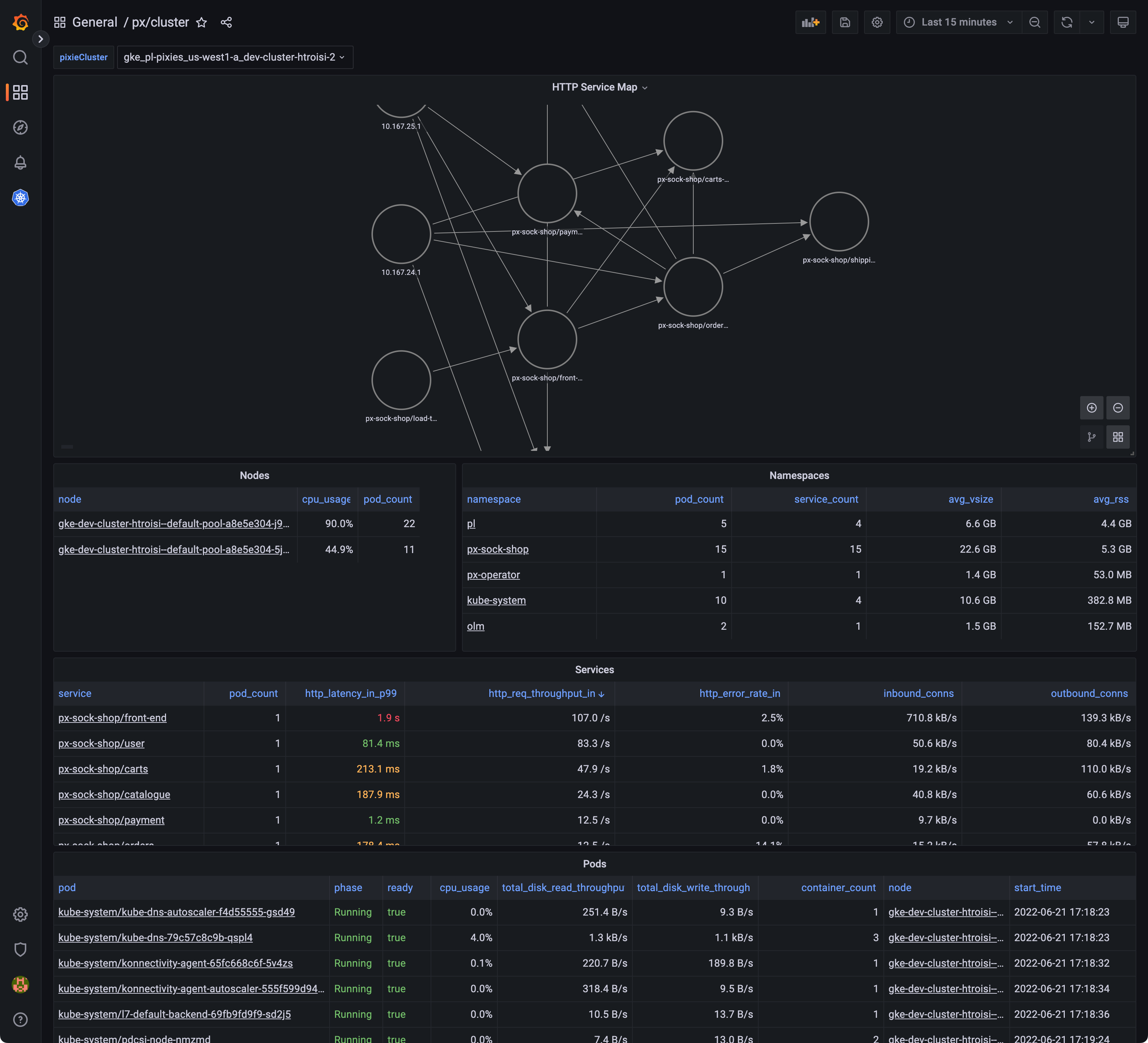 Find Pixie dashboards at Grafana.com/dashboards.
