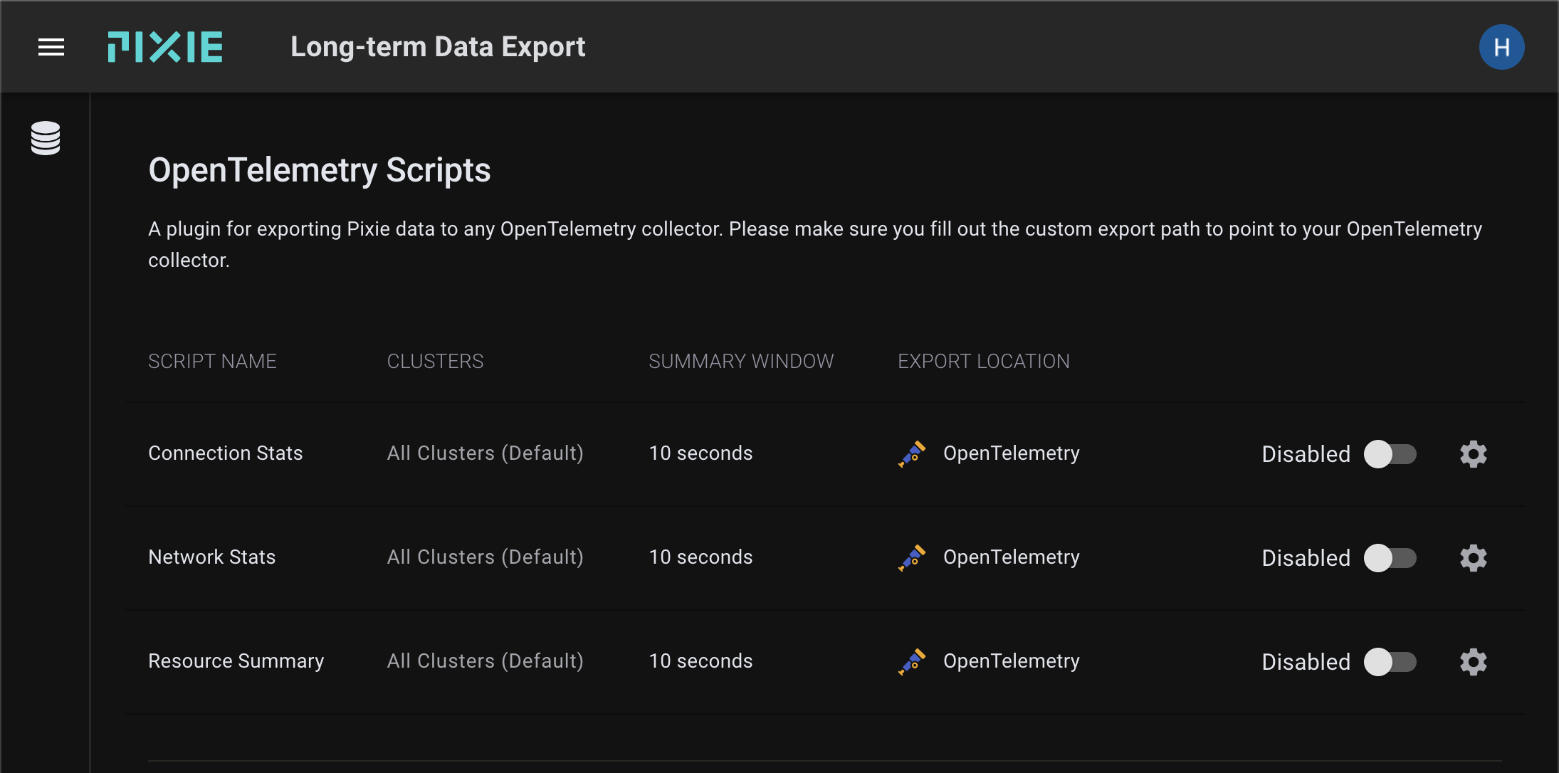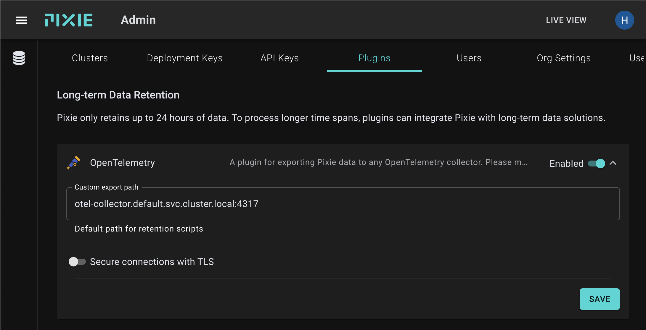 Now that we have a PxL script that exports OTel data, let's set up the Plugin System to run this script at regularly scheduled intervals.