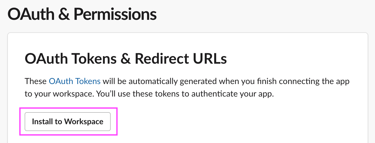 You have a Slack workspace to install your Slack App to. If not, please create a workspace.