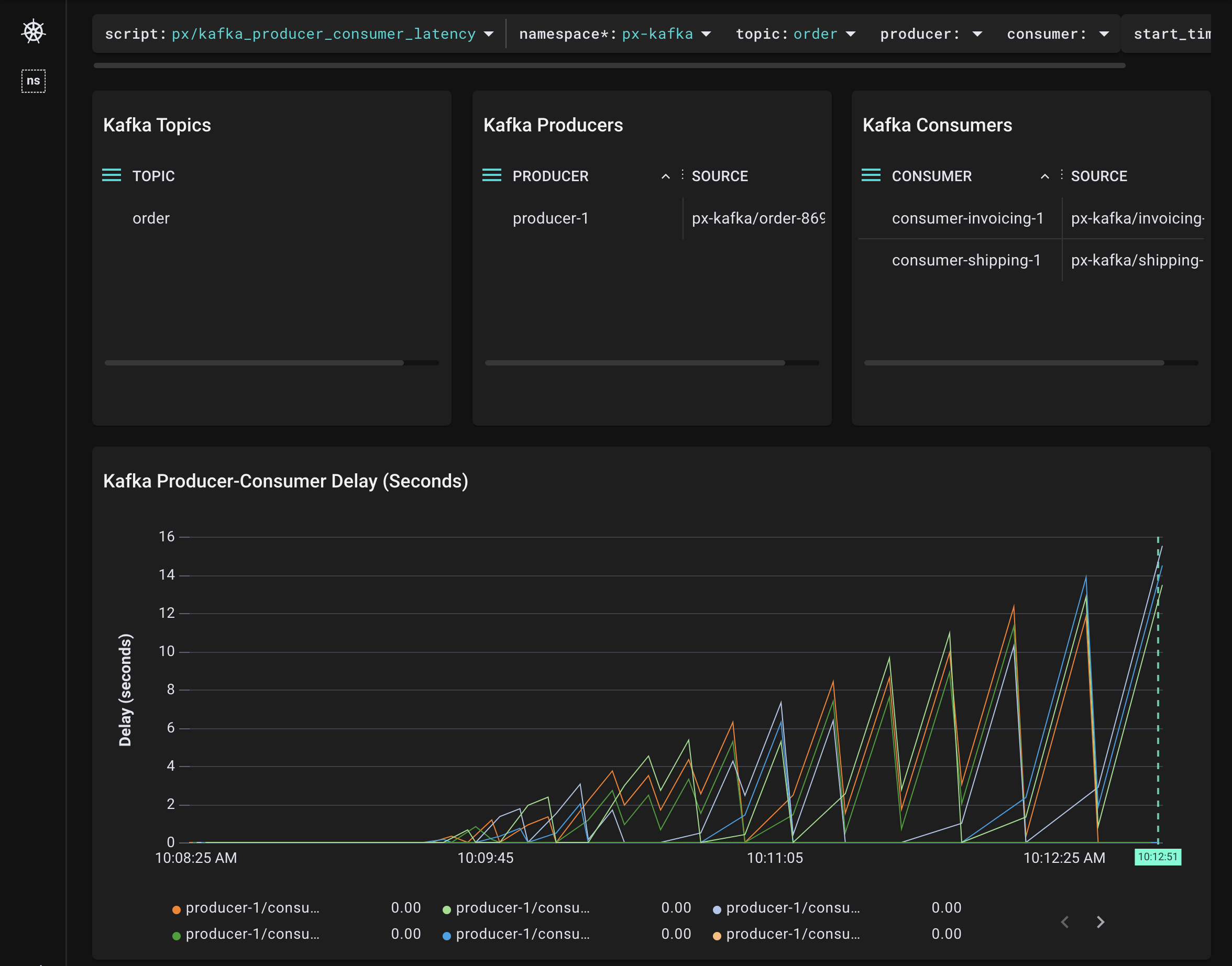 Select px/kafka_producer_consumer_latency from the script drop-down menu.