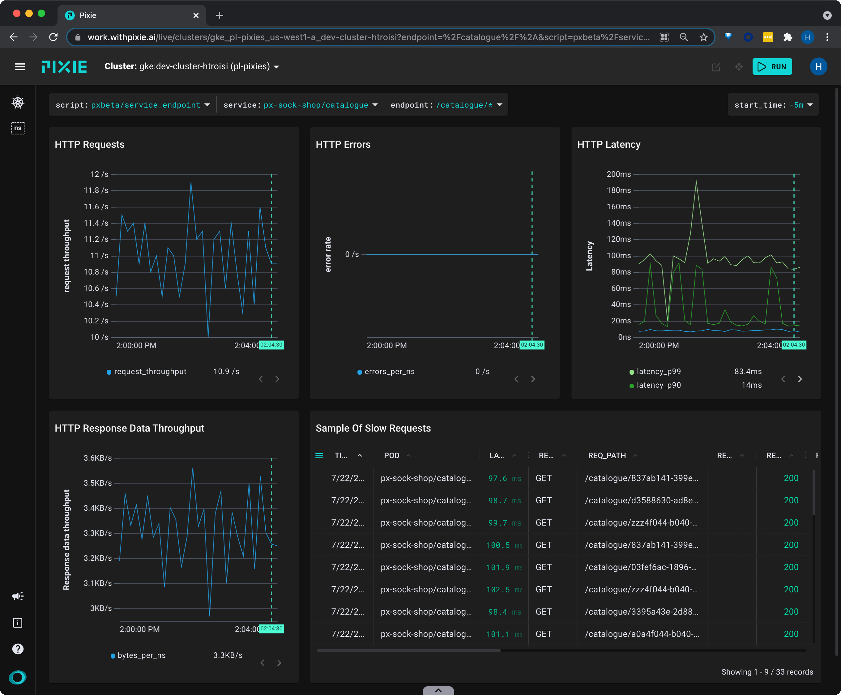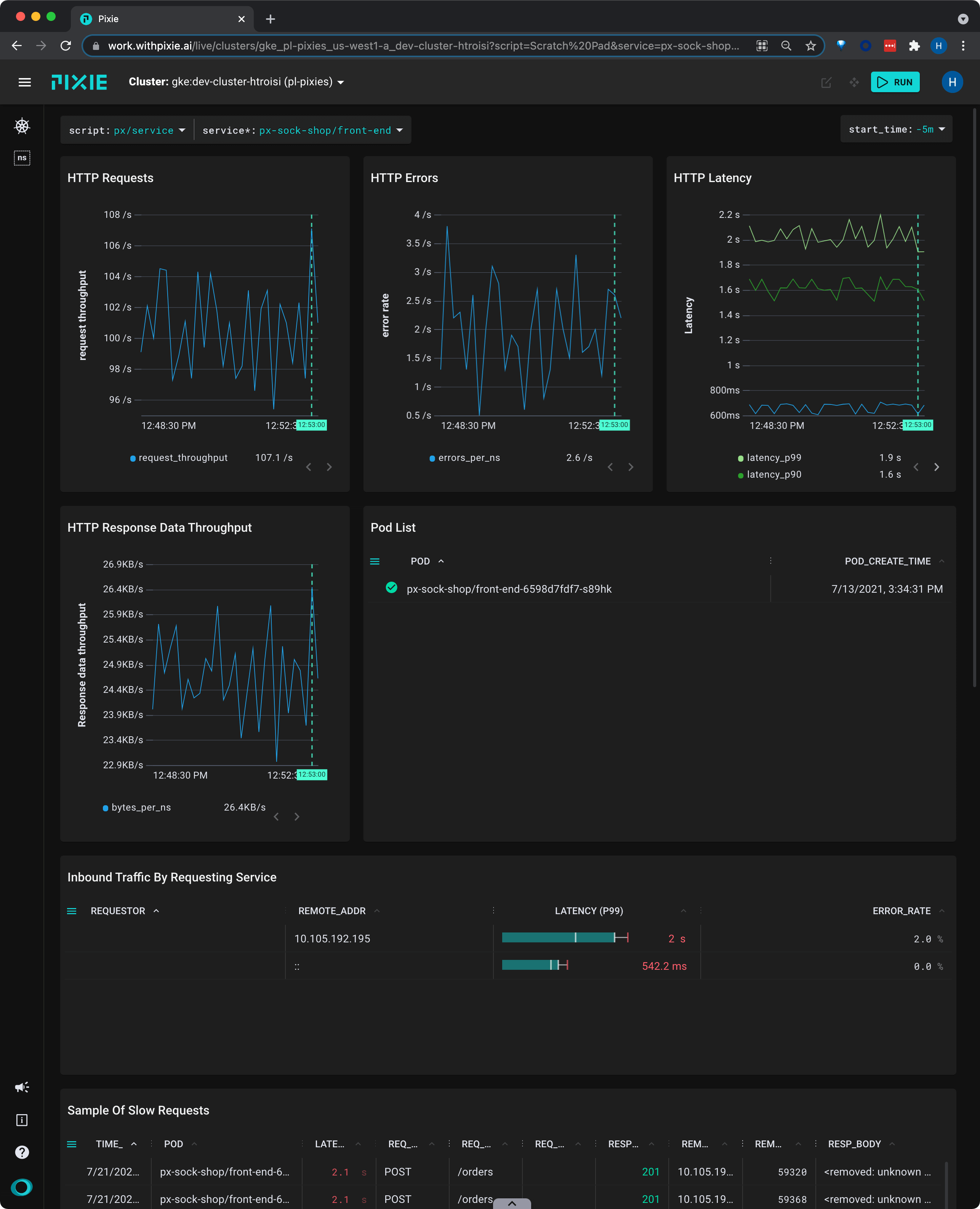 Unreliable or slow services can lead to a poor user experience for your customers. With Pixie, you can get immediate visibility into the health of your services, without the need for manual instrumentation.